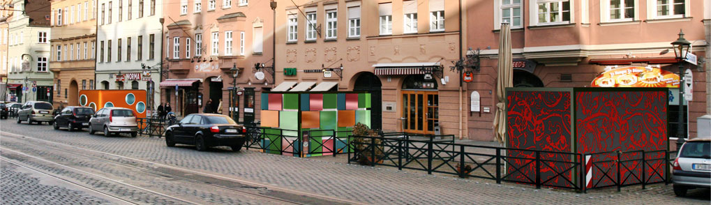 Als Kunstobjekte werden die modular aufgebauten Kuben durch individuell gestaltete Hüllen einzigartig und erhöhen als illuminierte Skulpturen die Attraktivität ihrer Umgebung.