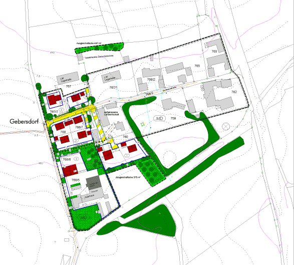 Um neues Bauland für eine Nachverdichtung im bestehenden Gebersdorf zu schaffen, musste ein Bebauungsplan mit Satzung und Umweltbericht erstellt werden. fußner kühne architekten verfassten dazu gemeinsam mit der Landschaftsarchitektin Julia Zimmer und in enger Abstimmung mit der Gemeinde einen entsprechenden Entwurf.