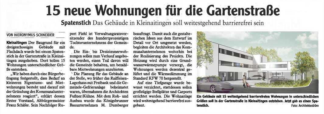 Artikel vom 22.09.2014 aus der Augsburger Allgemeinen zum Projekt "Barrierefreie Wohnanalge" in Kleinaitingen