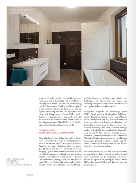 Artikel als PDF öffnen edition Schwaben Artikel aus dem Architektur Sonderheft vom Juni 2016 zum Mehrfamilienhaus Wörleschwang